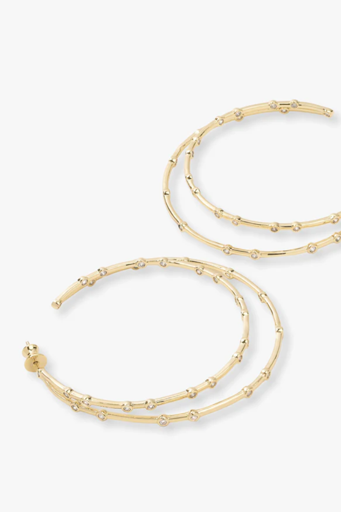 A Melinda Maria classic reimagined. The Big Ass Doubled hoops feature 2 circle hoops with simulated diamond accents for a BIG ass impact.