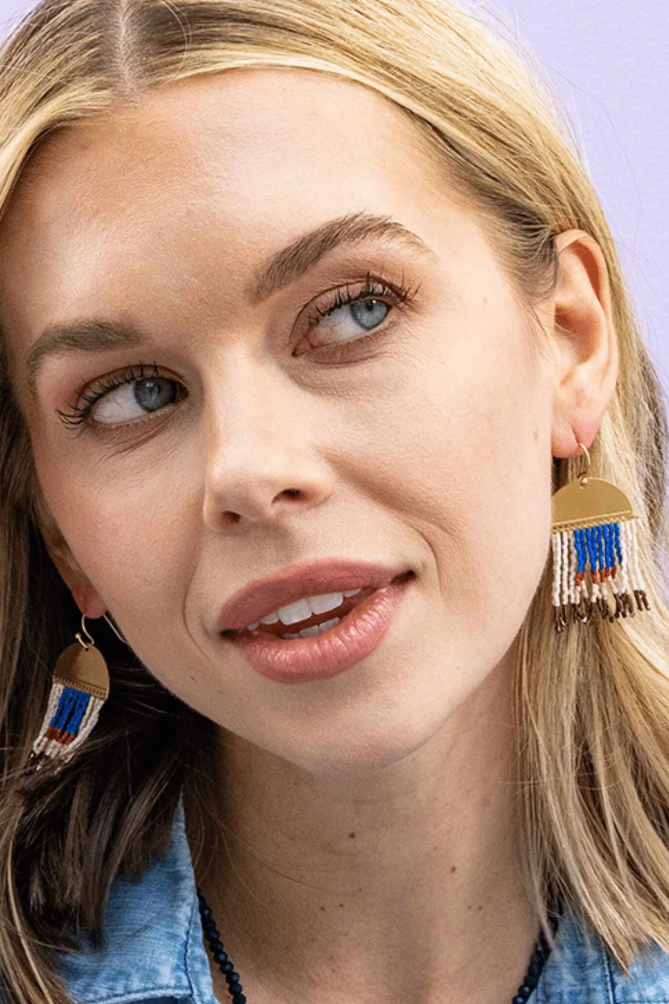 Make a bold and bohemian statement with the Luxe Brass Birdie Abstract Beaded Fringe Earrings. These brass earrings feature precision-cut luxe beads in ivory, blush, and blue hues. The abstract beadwork creates a captivating and folk-inspired design, while the fringe adds a touch of movement and flair. With a length of 2" and a width of 1", these hanger earrings are both eye-catching and lightweight, making them a perfect accessory to elevate your outfit.