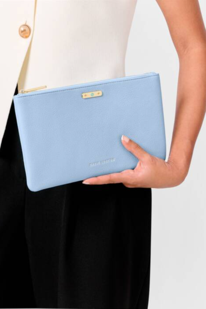 Our 'March' Birthstone Pouch features custom gold-tone hardware beautifully set with the month's real semi-precious stone Aqua Crystal. Inside the zip closure you'll discover a hidden message and individual traits that perfectly represent the birthday girl. For the ideal gift pair this pouch with the matching Birthstone Bracelet and Keychain.