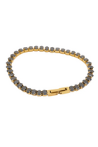 The Black Monroe Bracelet from Hjane Jewels delivers timeless glamour with a bold, modern edge. Designed in a classic tennis bracelet silhouette, it features a seamless row of sleek, round-cut black crystals that shimmer with understated drama. The deep black stones are set in a polished gold-tone frame, creating a striking contrast that feels both luxurious and effortlessly chic.