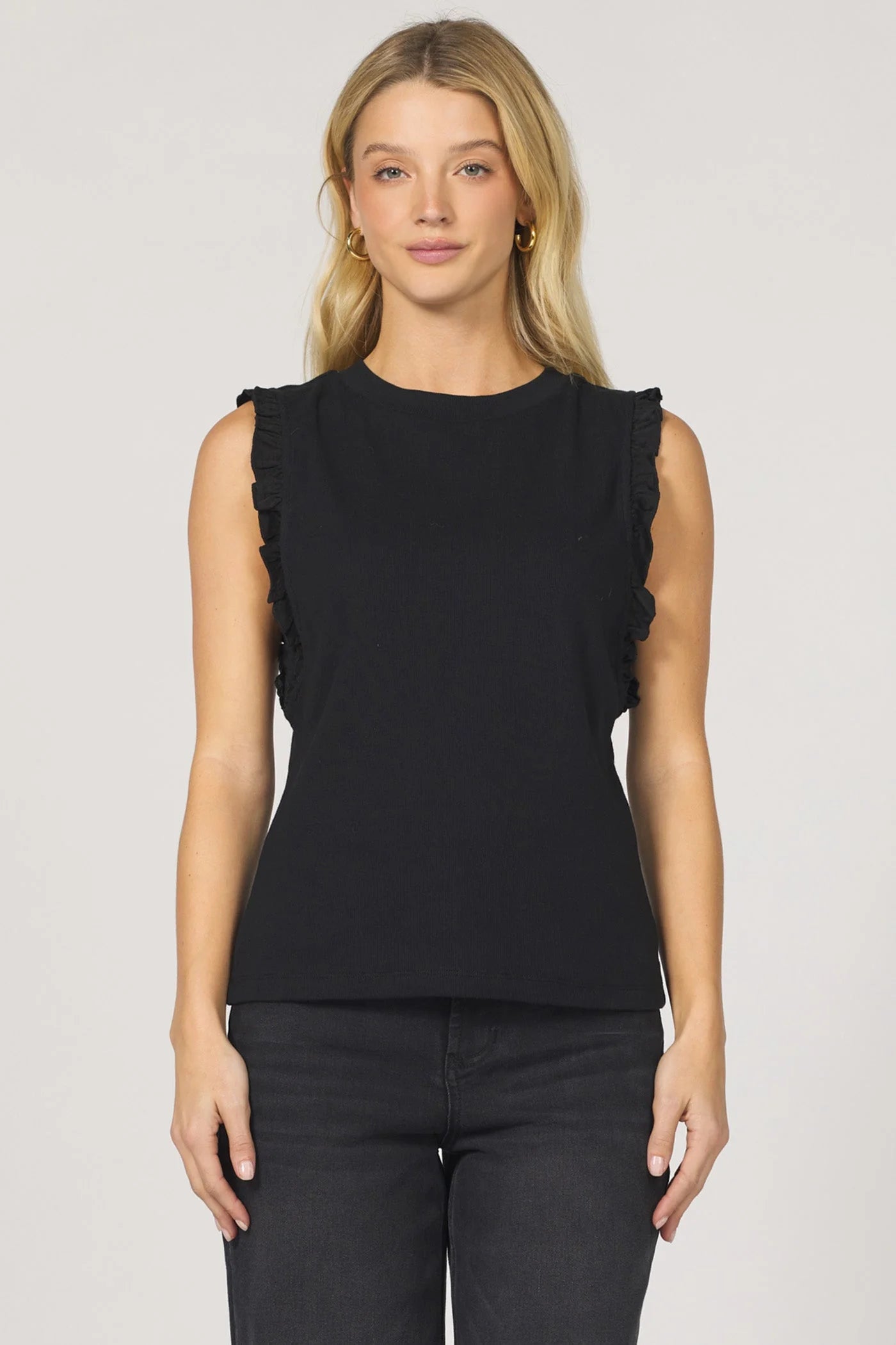 Hightlight your wardrobe with the Bridgette suede ruffle top.