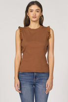 Highlight your wardrobe with the Bridgette suede ruffle top.