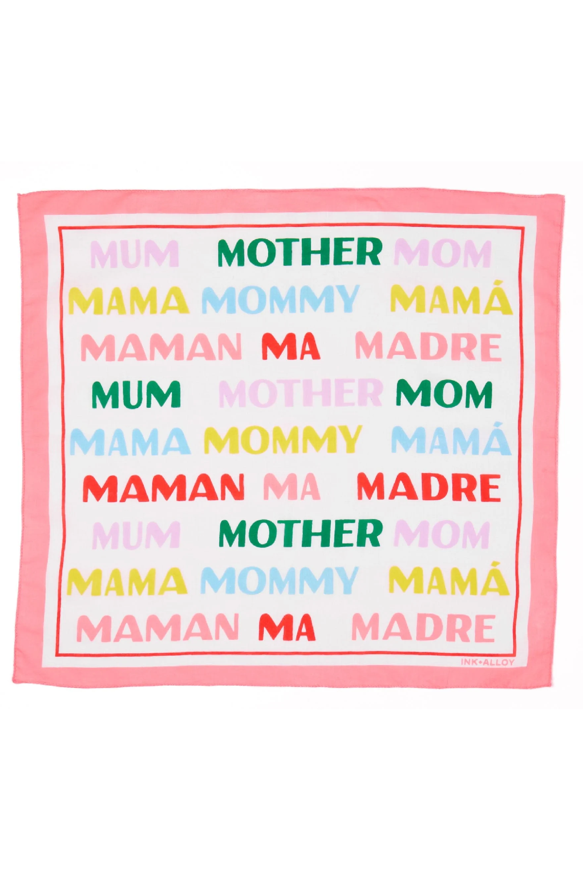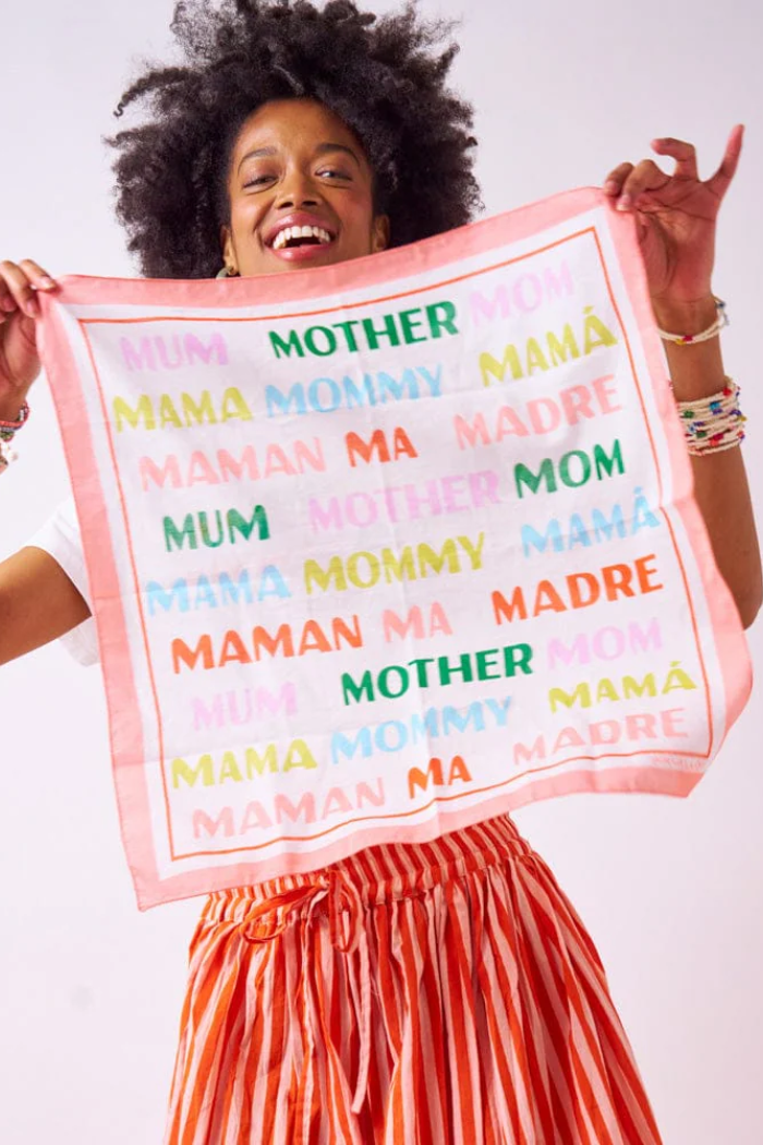 • Graphic “Mom” print with a bold, colorful layout