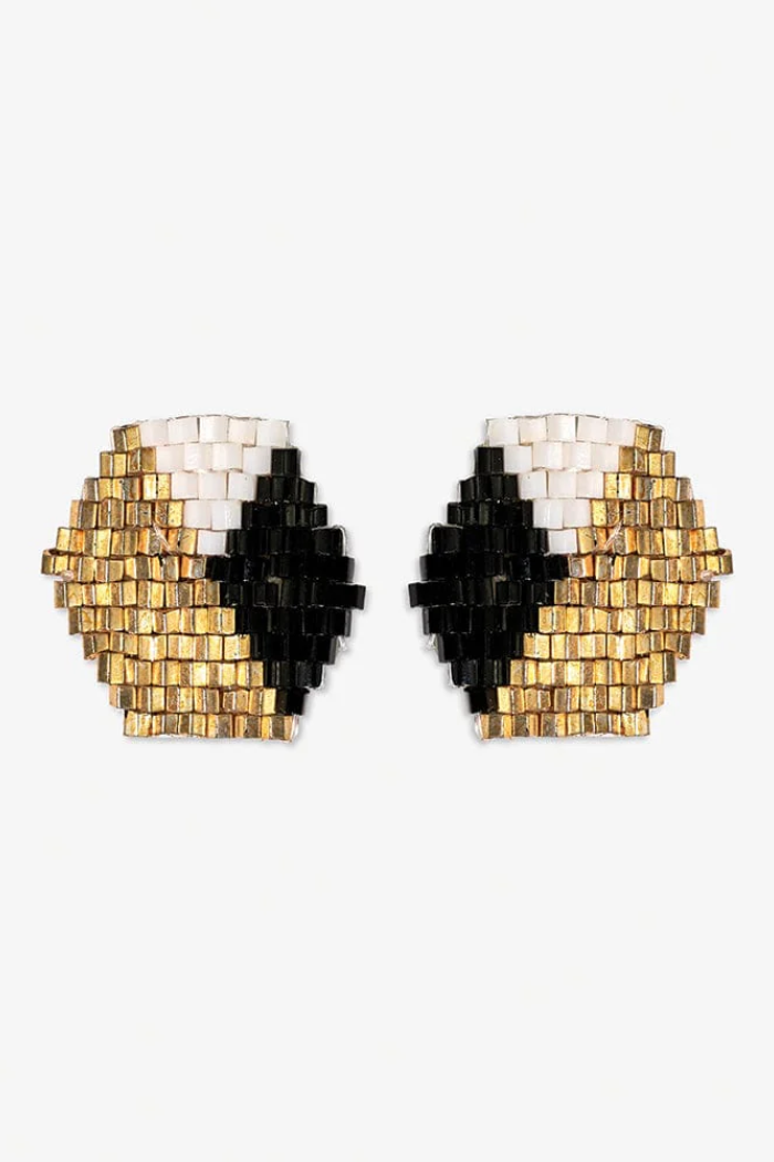 Casey Hexagon Post Beaded Earrings Black & White