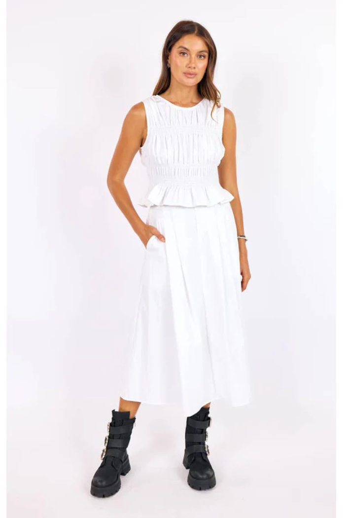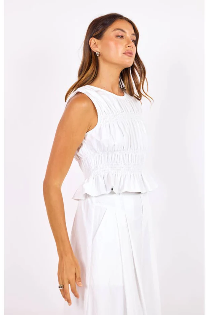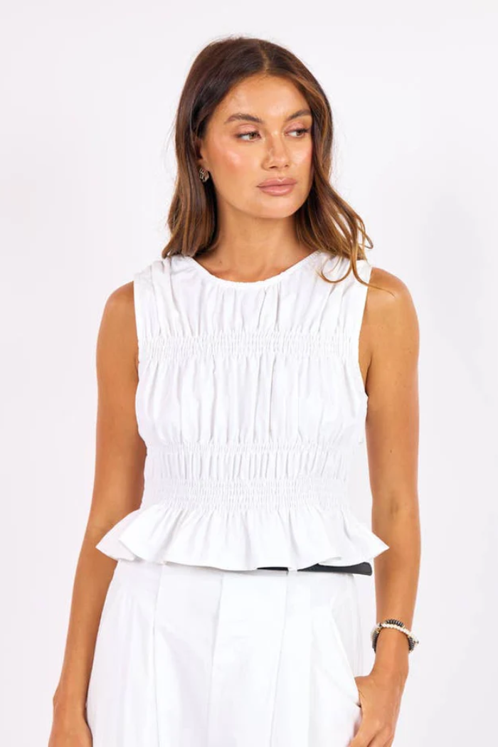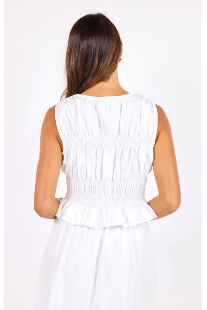 Fresh, flattering, and endlessly versatile—the Central Park Ruched Tank in White from Sage The Label is the warm-weather essential your closet has been waiting for. Designed with soft structure and feminine detail, this elevated basic makes everyday styling feel effortlessly polished.
