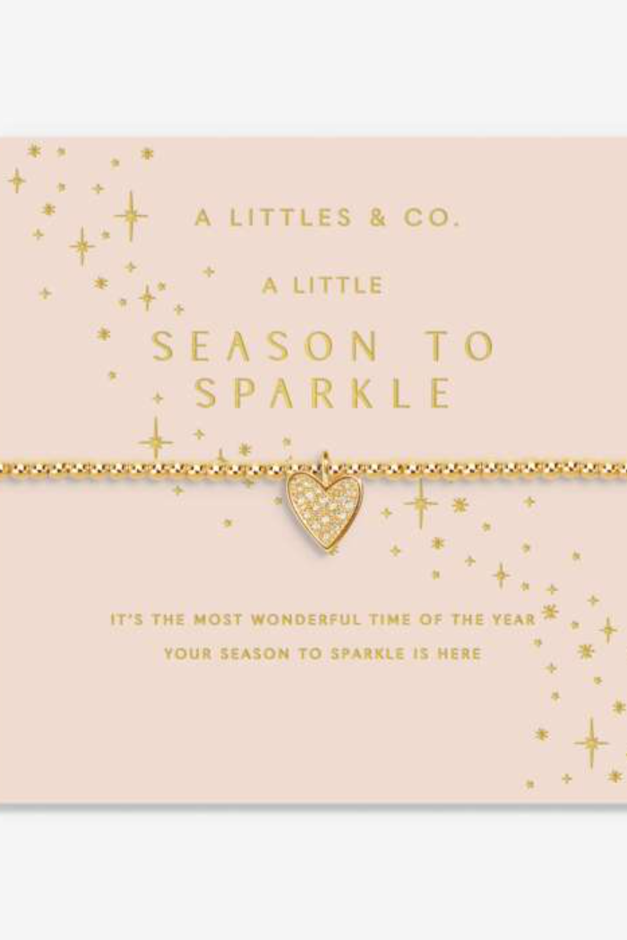 Capture every magical moment with your loved ones this festive season with our twinkling Christmas A Little Bracelets! Made to last and be loved for a lifetime, our Christmas A Little 'Season To Sparkle' Bracelet In Gold-Tone Plating is threaded with our classic gold-tone plated beads and decorated with a pretty pavé heart charm to celebrate sparkly season. Wrapped around a shimmering starburst-print card and framed by a sweet poem, it's sure to make a wonderful stocking stuffer or under-the-tree treat.