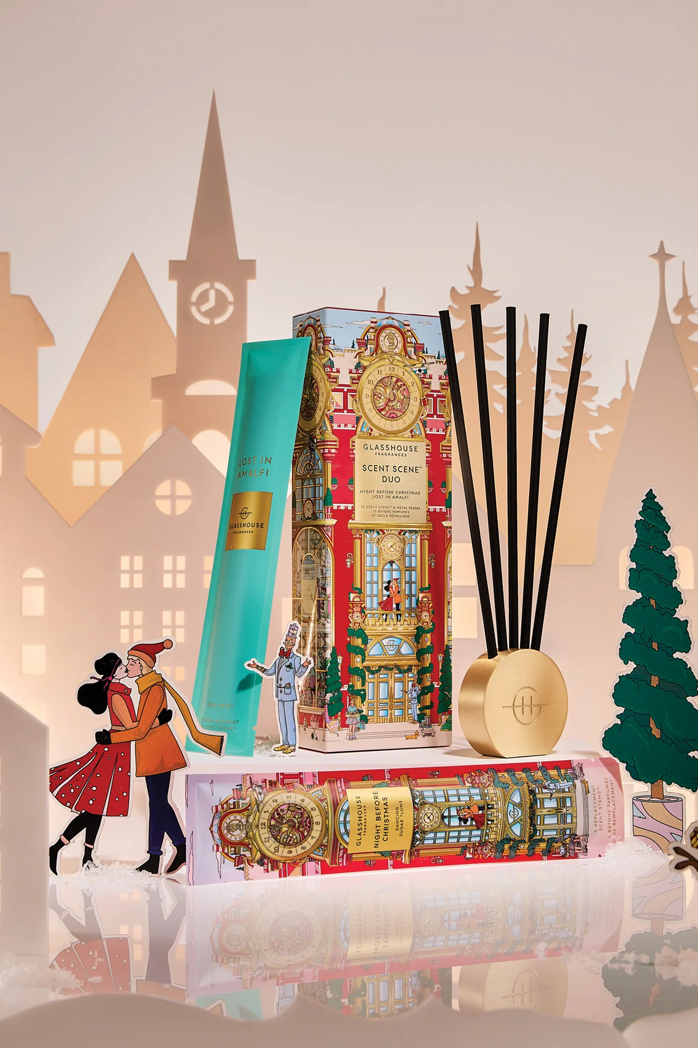 Contains brushed metal vessel and 2 x refills: Lost In Amalfi, and our festive floral scent Night Before Christmas.