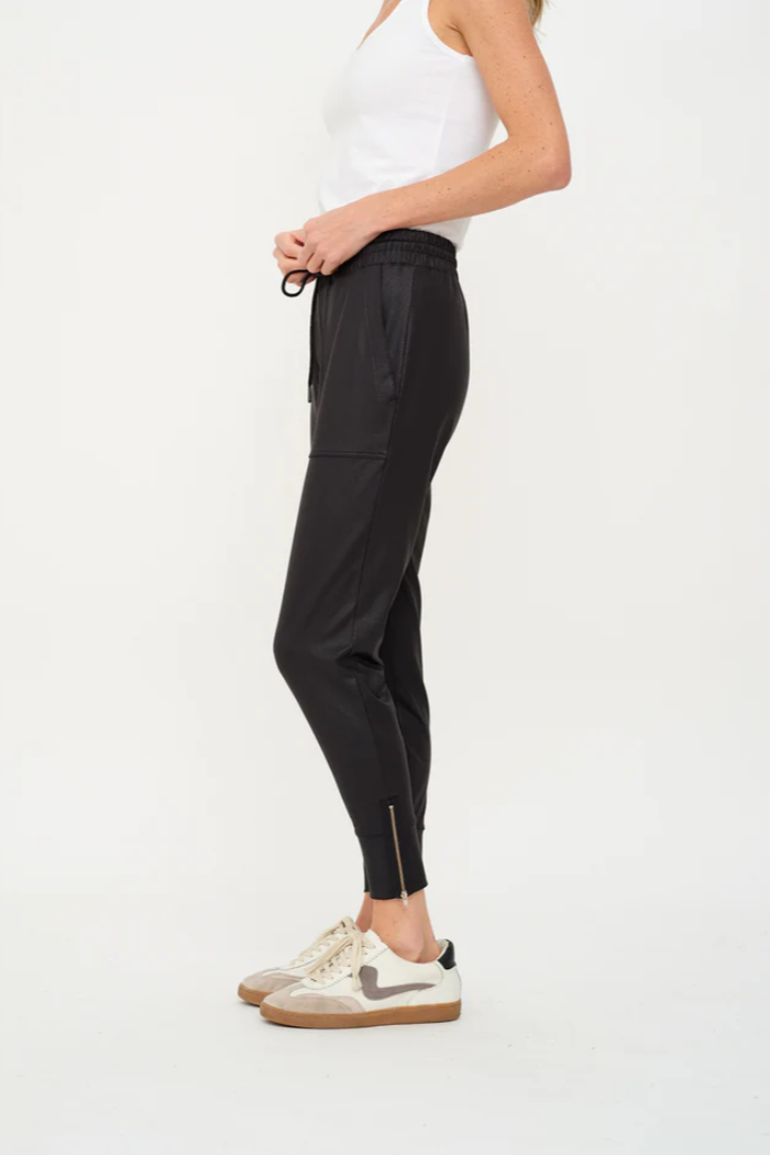 Versatile, chic, and undeniably stylish, the Coated Jogger Headliner in Black is your go-to piece for effortless day-to-night outfits with an edge.