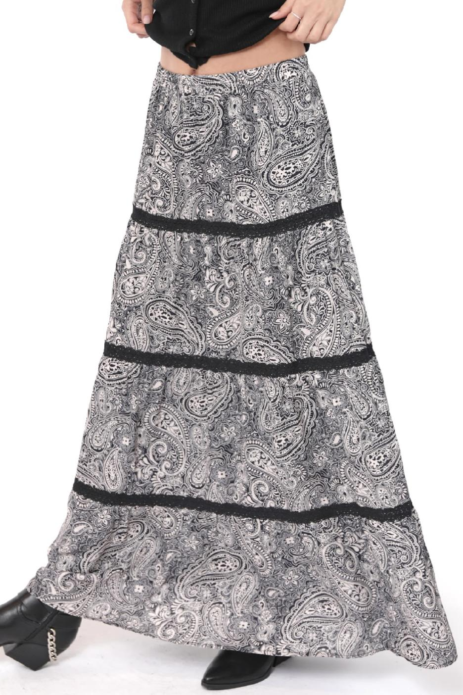 Cool Girl Tiered Paisley Maxi Skirt
