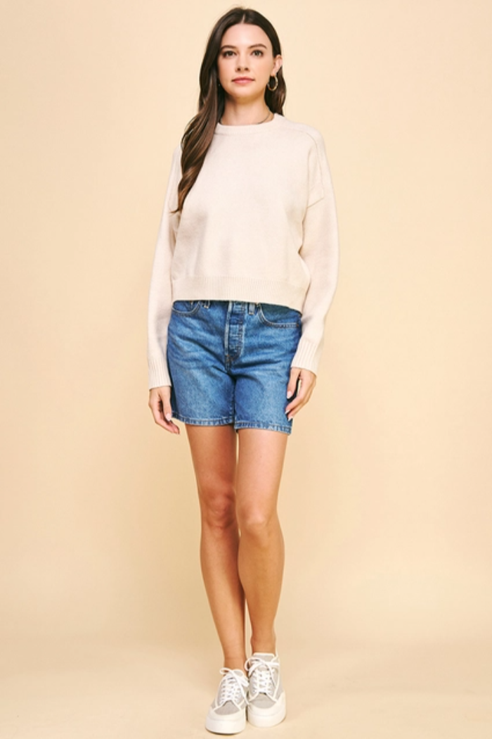 Elevate your wardrobe with this effortlessly chic cropped sweater. Designed with a relaxed drop-shoulder silhouette, it offers a cozy yet stylish fit. The long sleeves provide warmth, while the cropped waist-length cut adds a modern touch, perfect for layering or pairing with high-waisted bottoms. A versatile staple for any season!