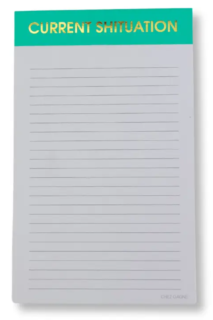 The Current Shituation Notepad is made for jotting down everything life throws your way — the good, the bad, and the WTF moments. With its aquamarine cover and luxe gold foil phrase, this notepad pairs humor with function, turning everyday note-taking into a little dose of comic relief. Perfect for grocery lists, work reminders, or daily brain dumps, it helps customers stay organized while laughing through the chaos.