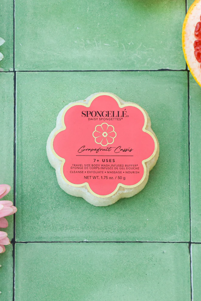 Our Grapefruit Cassis Spongette meets Daisy Collection’s signature flower design. Everything you love about our travel-friendly Spongette with the bonus of soft petal curves to enhance your cleansing experience. Treat yourself to the scent of sun-kissed paradise with bursts of zesty grapefruit, lush cassis, and cozy vanilla. Plus, our Spongette is accepted on all airlines making Grapefruit Cassis a necessary companion on your next exotic vacation.