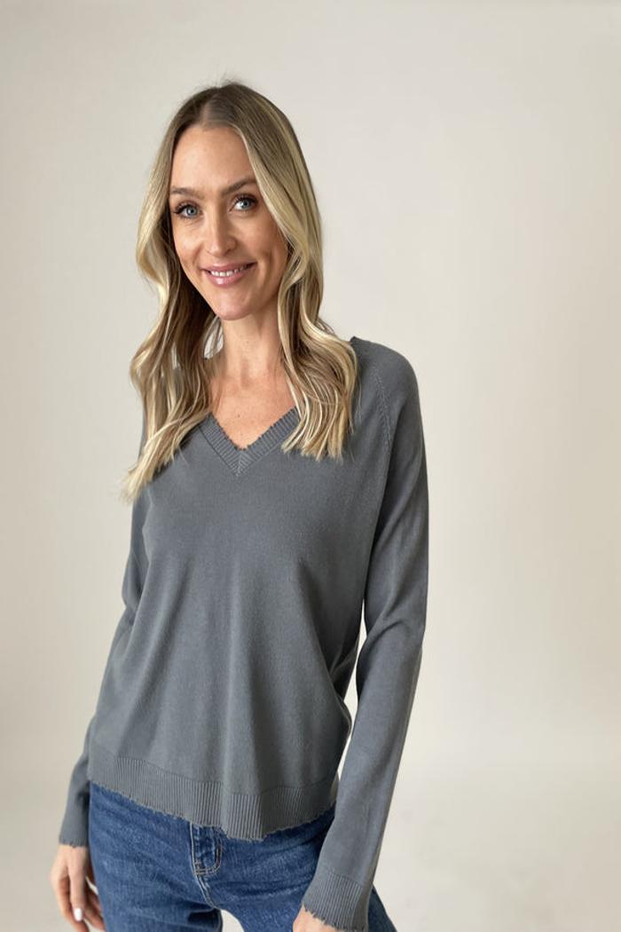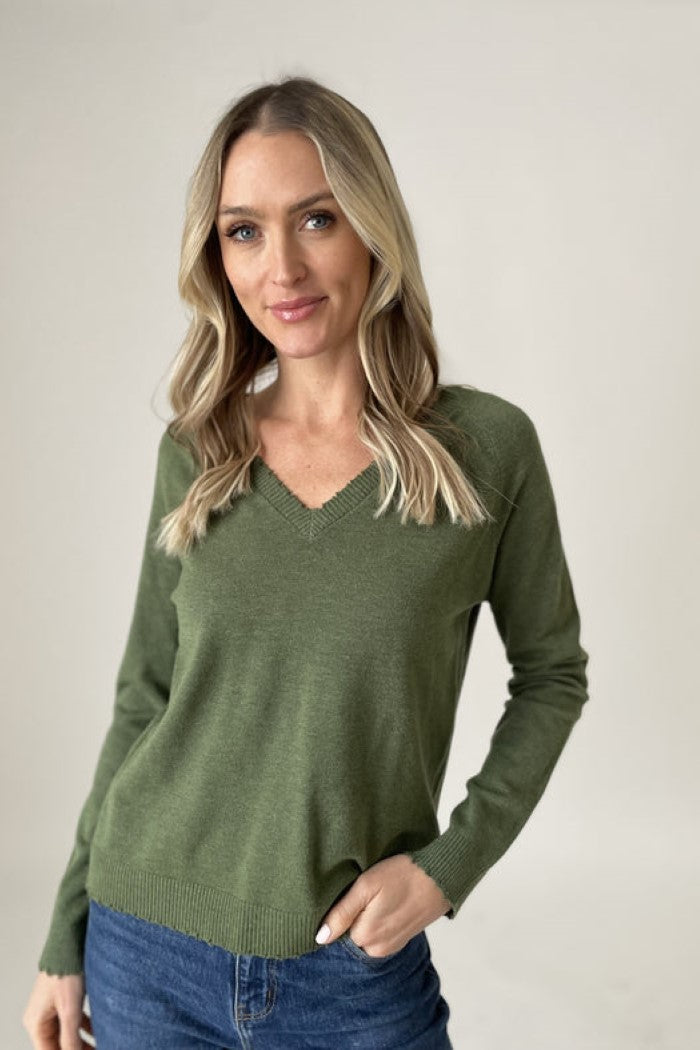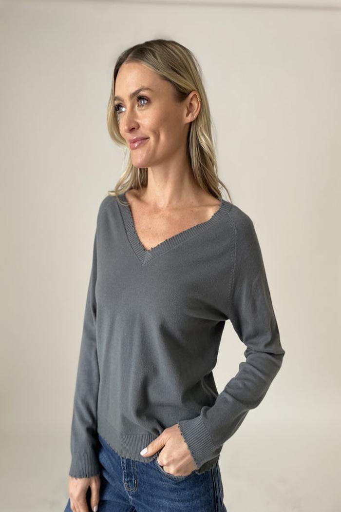 With two new seasonal colors, the Andrea sweater is here to stay! Featuring a v-neckline and fringed detailing along the outer edges, it's the perfect piece for this season. An excellent transitional piece for your closet, this fabric is soft and lightweight.