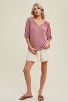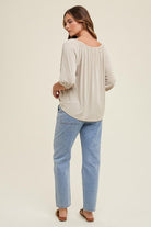 DROP SHOULDER KNIT TOP WITH NOTCH DETAIL