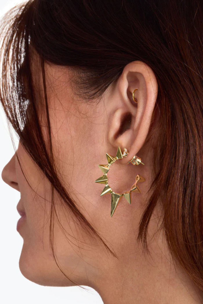 If you like Gabriella, just wait til you meet her big sister. Inspired by our best-selling Gabrielle Spike Hoops this larger, bolder version is more than ready to party in smooth gold or silver.