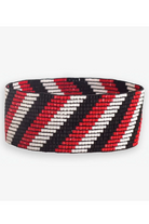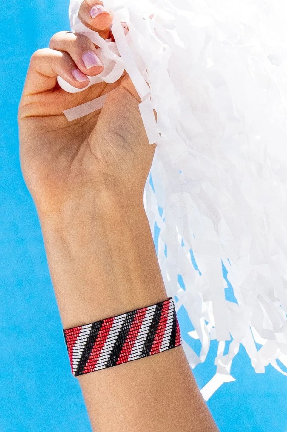 Whether you're cheering in the stands or enjoying a celebratory brunch, the Kenzie Diagonal Stripes Bracelet lends spirited flair to elevate your game day outfit. The classic scarlet red and black palette gets an eclectic upgrade from the beaded texture and striped motif. Handcrafted with exceptional quality, this beaded stretch bracelet allows you to showcase team pride with style.