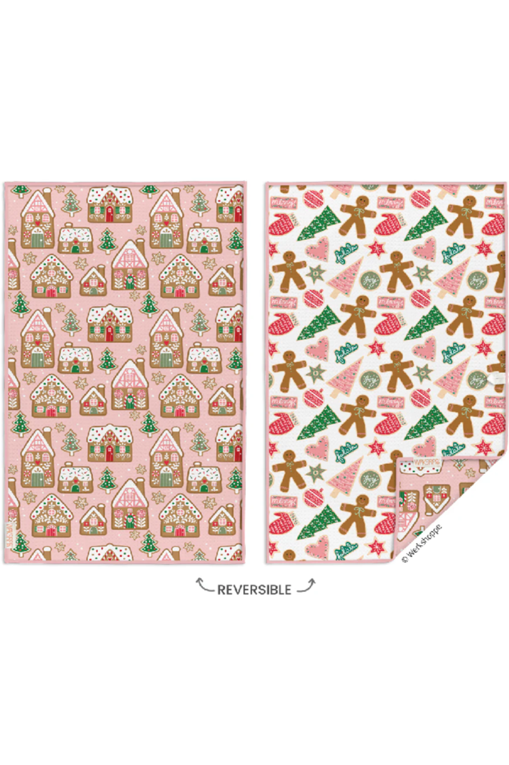 Bake up some holiday cheer with the Gingerbread Cookies reversible microfiber kitchen towel! Featuring charming gingerbread houses on one side and sweet cookie designs on the other, this festive towel brings cozy kitchen vibes and practical performance to all your seasonal cooking and cleanup.