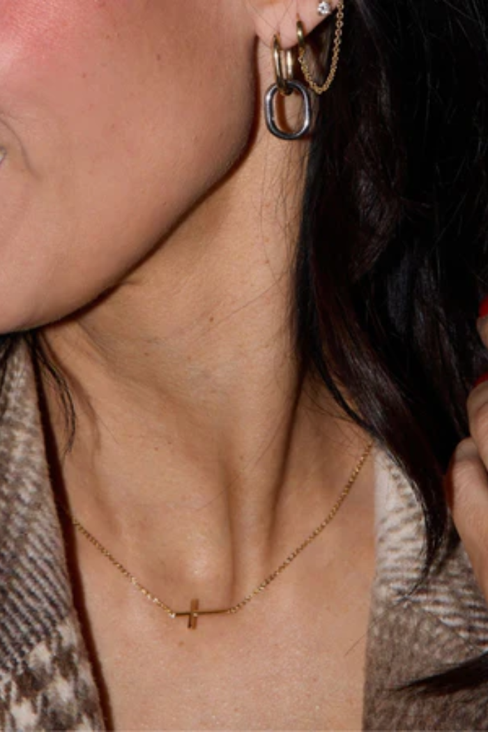 The Sideways Cross Necklace is the perfect balance of simple yet bold, ideal for wearing alone or layered. Featuring durable PVD plating and being fully waterproof, it’s designed for all-day wear without compromising style. The adjustable chain is crafted to sit perfectly on your neckline, adding a modern touch to any look.