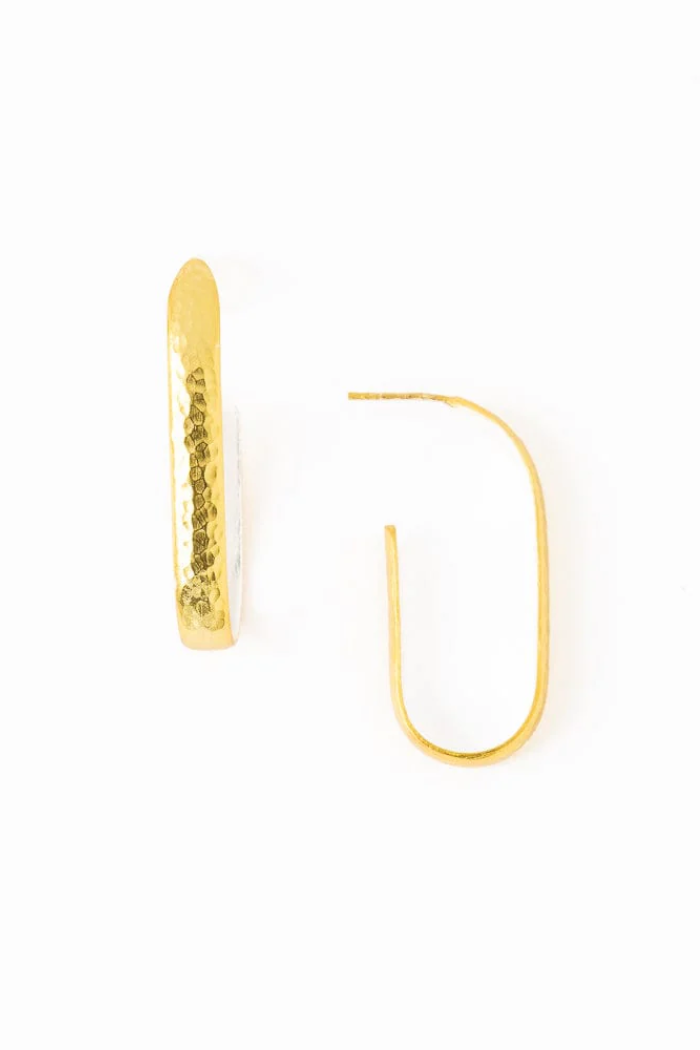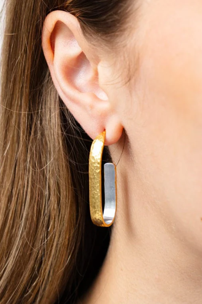Hallie brass hammered hoop earrings with silver lining