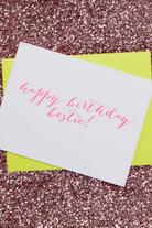 Celebrate your ride-or-die with our “Happy Birthday Bestie” card, letterpress printed by hand on luxe, tree free paper. Bright, bold, and full of fun, it’s the perfect way to show your BFF just how much they mean to you on their big day.