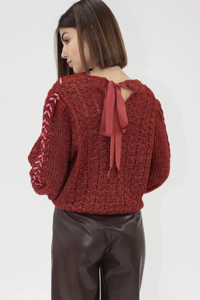 The long sleeve Harper sweater is cozy and chic, featuring a ribbon detail for a fashionable touch. Blending of acrylic and polyester is perfect for layering or wearing on its own. Versatility for any lifestyle to pair it with your favorite pants or skirts for a polished look.