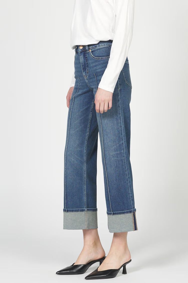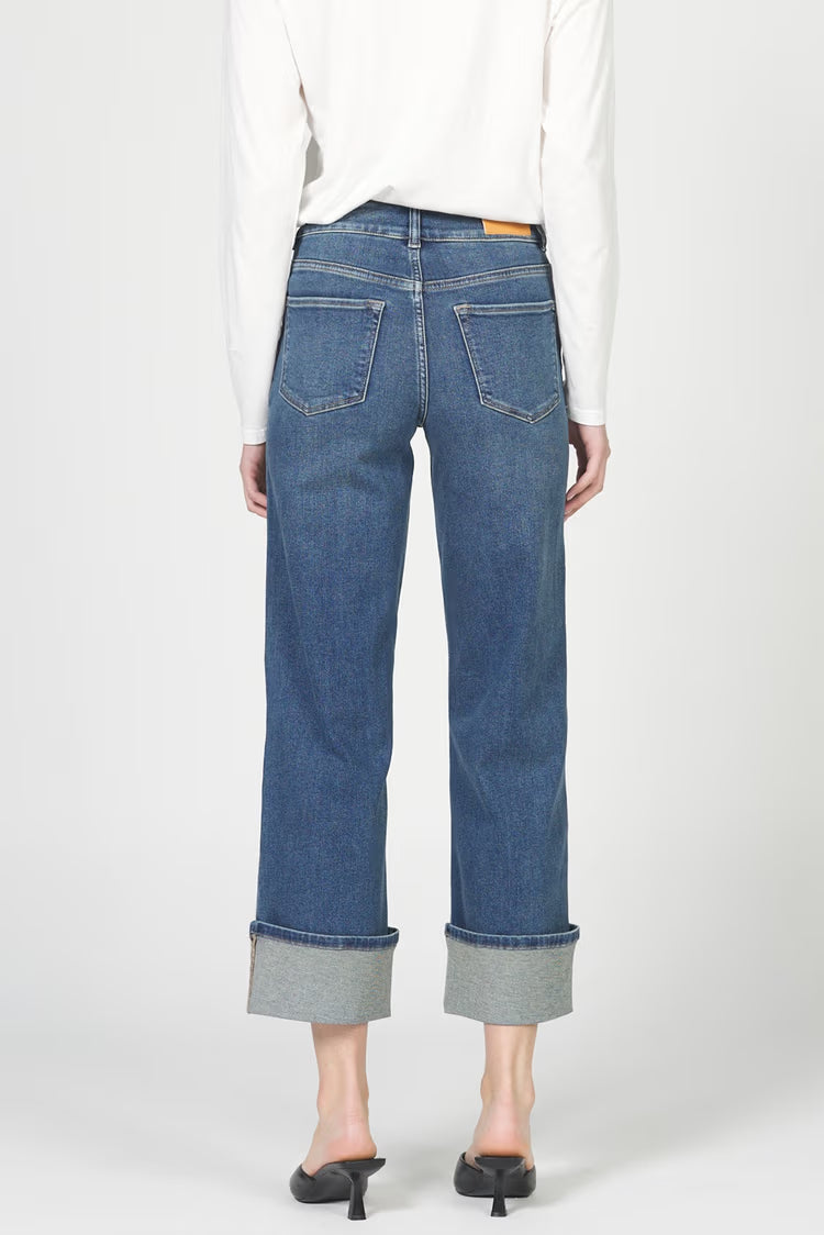 Holly high rise jean featuring a cuffed hem design provide a modern look for any occasion.