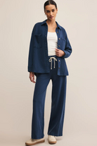 Say hello to your new go-to full-length pant, featuring trouser pockets and a fully functional drawcord waistband for that perfect fit. Made from lightweight knit denim, these pants combine style and comfort effortlessly for any occasion.