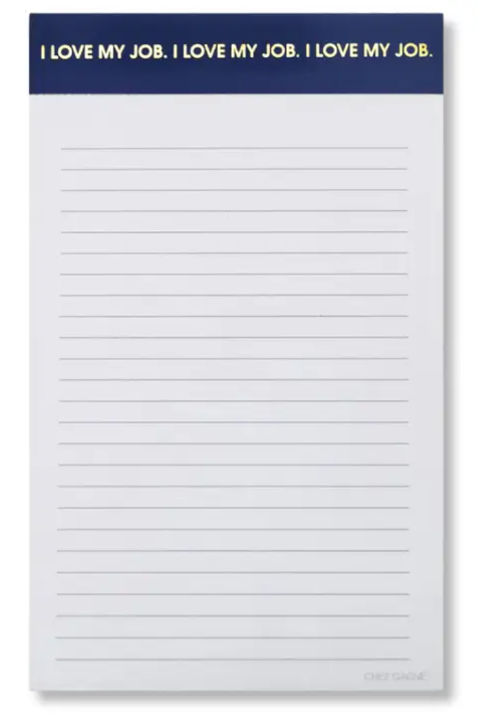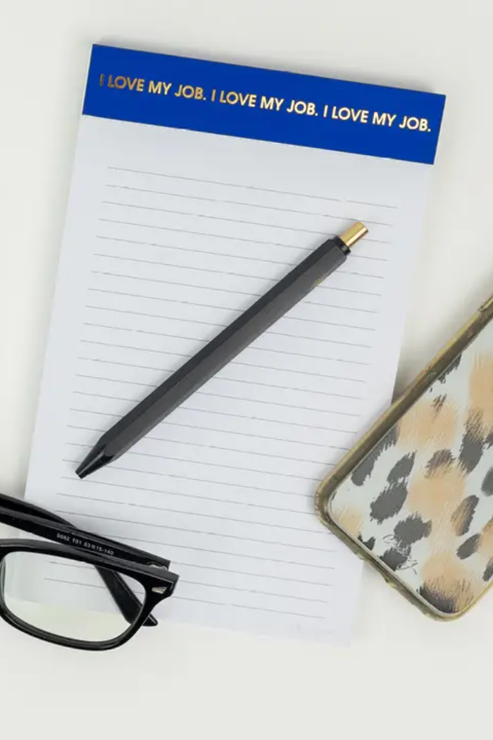 The I Love My Job Notepad is the ultimate desk companion — whether customers say it with sincerity or sarcasm. With its navy blue cover and luxe gold foil phrase, this pad is designed for jotting down meeting notes, to-dos, or those “why am I here?” thoughts that strike between emails. Equal parts professional and playful, it’s a stationery staple that fits into any office or home setup.