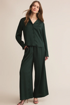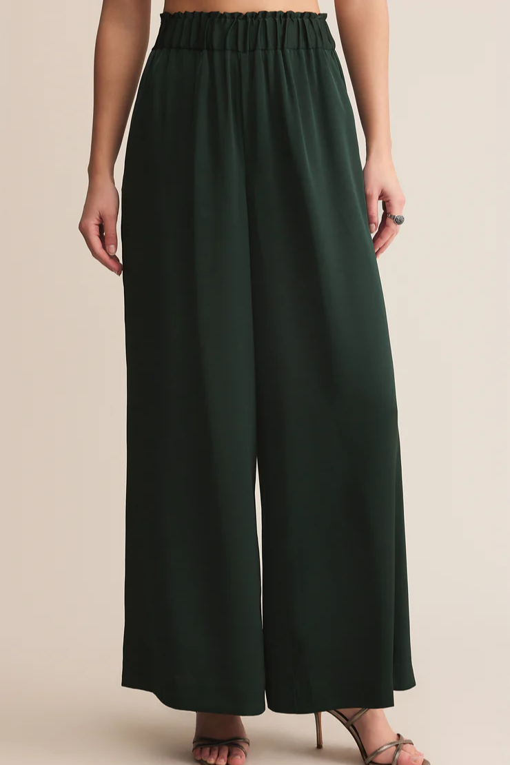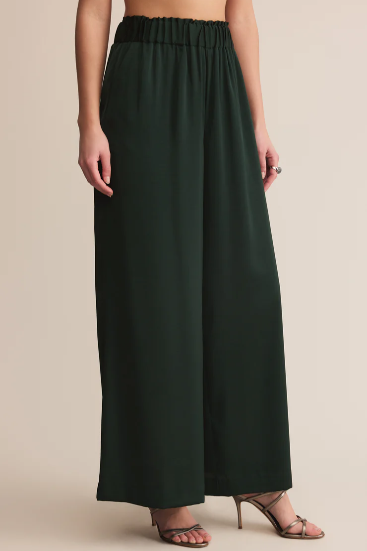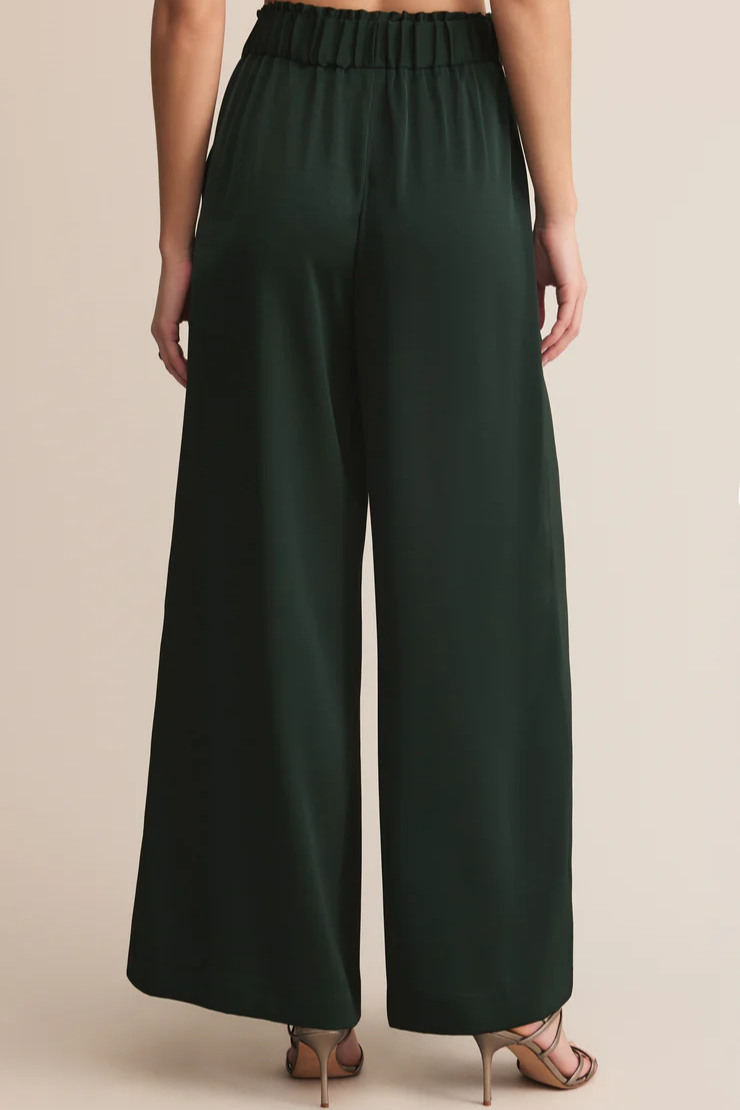 Made from a silky satin fabric with a high rise and wide leg, this pant delivers easy sophistication in a fluid, relaxed design. An elastic waist and subtle sheen make it an instant favorite for dressed-up days or cozy nights in.