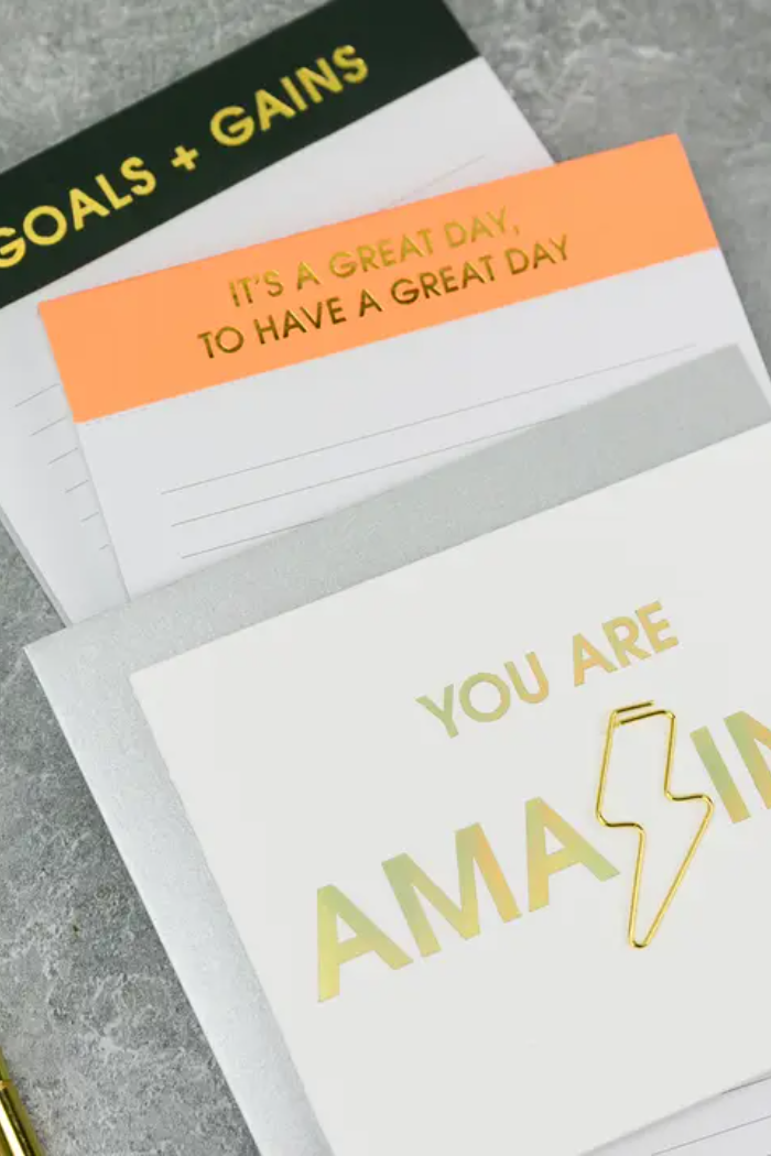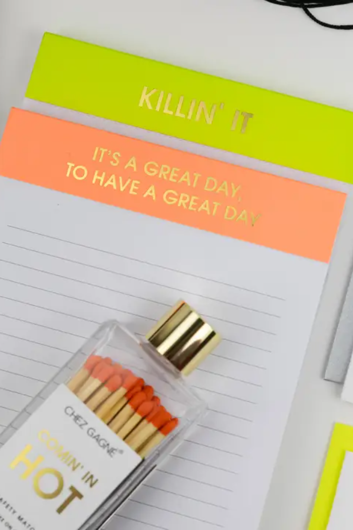 The It’s A Great Day To Have A Great Day Notepad is designed to spark positivity with every list. With its bright orange cover and luxe gold foil phrase, this pad blends cheerful motivation with everyday function. Perfect for jotting down morning goals, daily to-dos, or reminders, it’s an instant mood boost on any desk or kitchen counter.