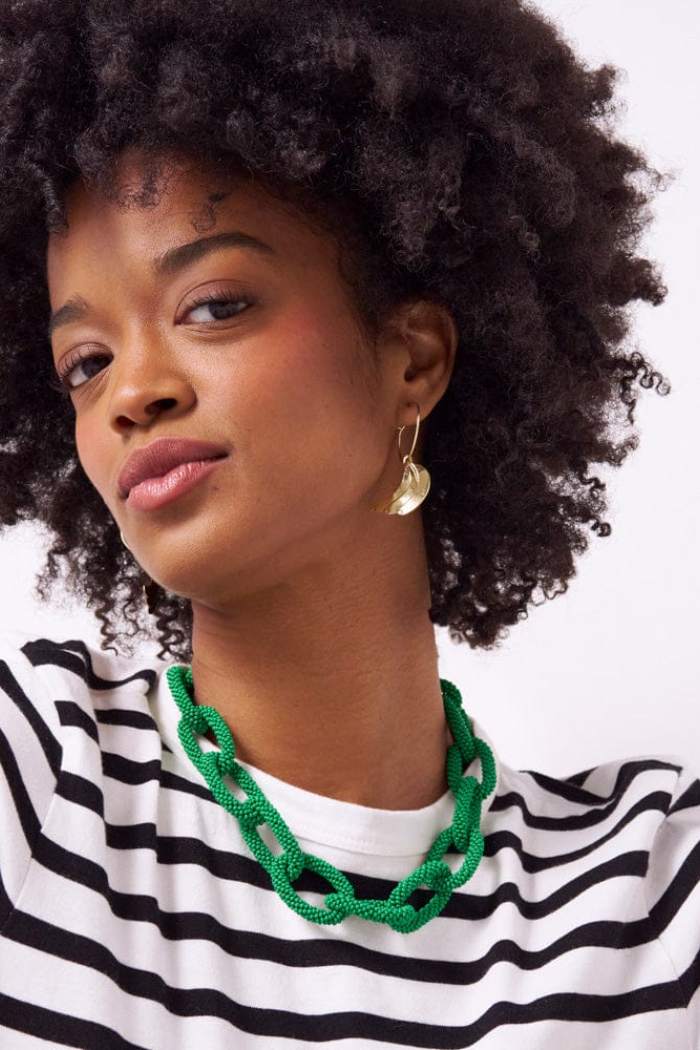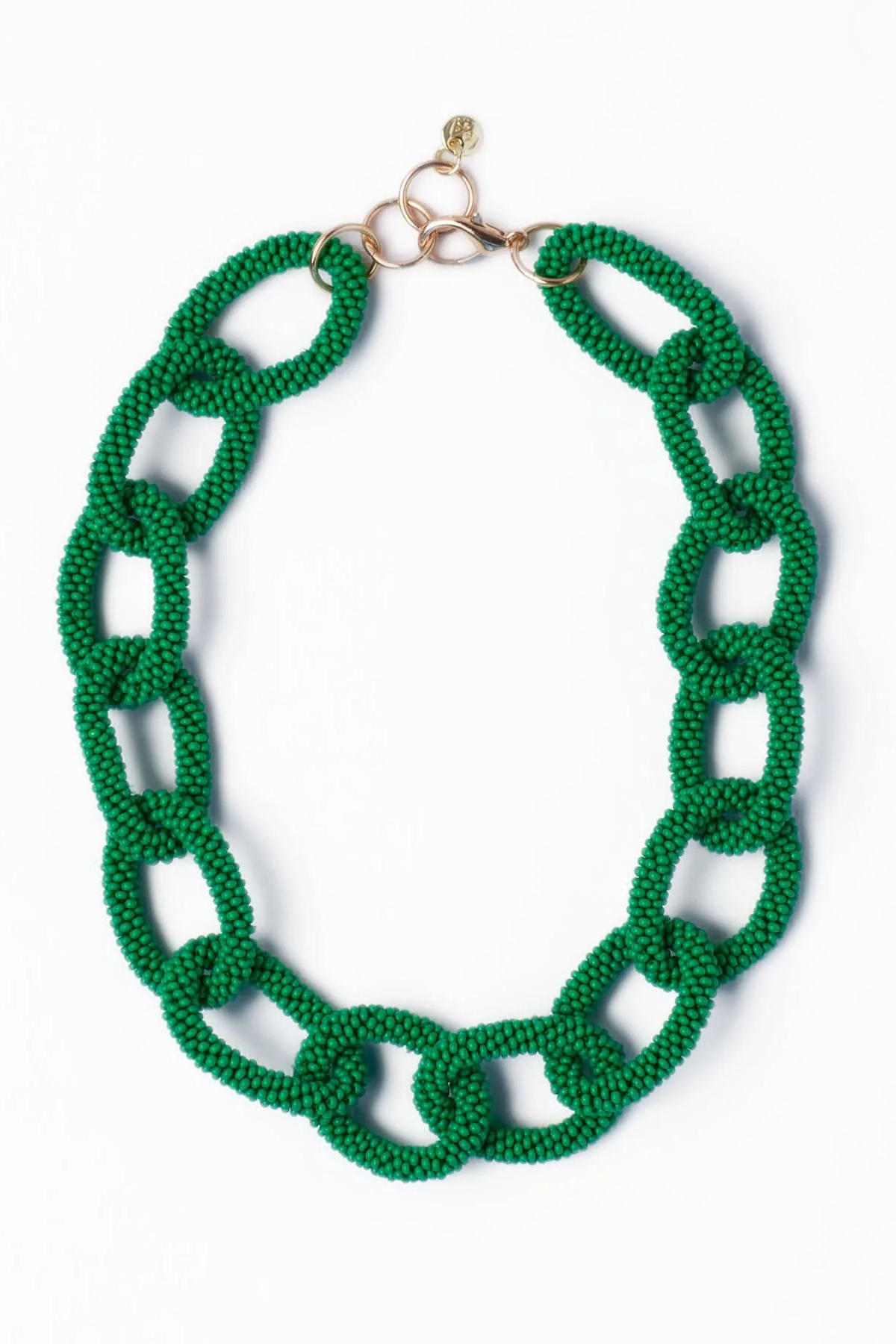 Jenna Chain Link Beaded Necklace in Kelly Green