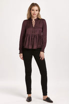Jewel Long Sleeve V Neck Relaxed Fit Top Midnight Plum