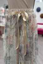 The Julissa Watercolor Maxi Skirt brings a dreamy, romantic touch to your wardrobe. Designed with a lightweight, sheer overlay in a soft watercolor floral print, this flowy skirt creates effortless movement with every step. The elastic waistband with a satin ribbon tie ensures a comfortable, adjustable fit, while adding a delicate feminine detail.