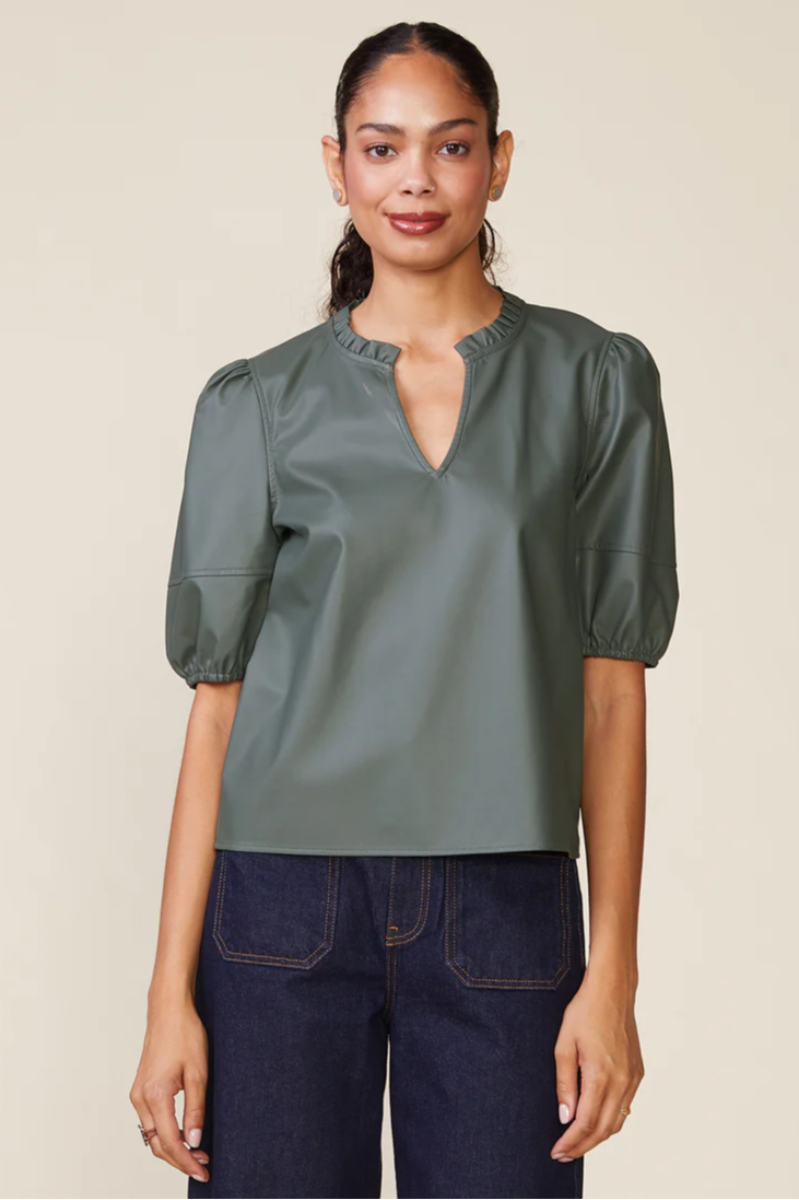 Kacey Vegan Leather V-Neck Top