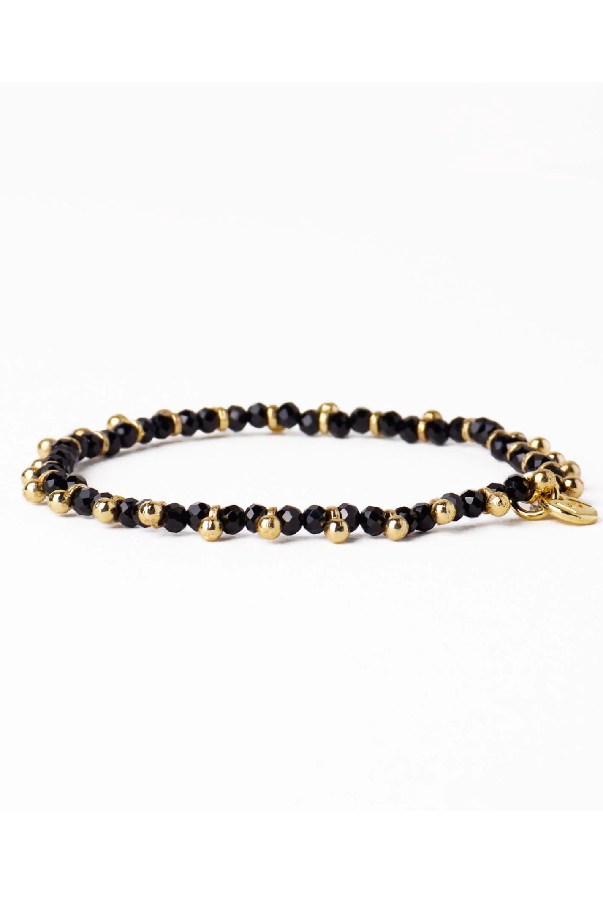 Kami Crystal With Brass Charm Stretch Bracelet Black + Gold