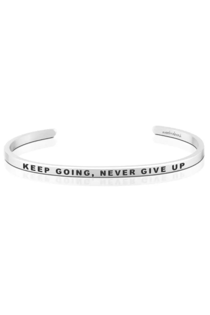 Keep Going, Never Give Up - inspirational mantra® cuff