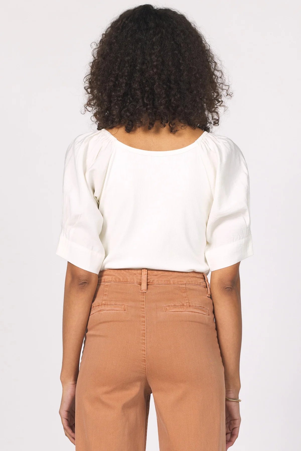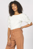 Kera crew neck in mix media puff sleeve top, featuring classic mix of rayon, polyester and spandex. It's perfect for dressing up or down for all-day comfort and style. The classic fit allows for easy movement is a reliable choice for any occasion.
