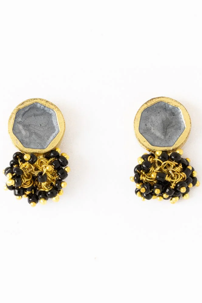 • Silver enamel post + black glass bead