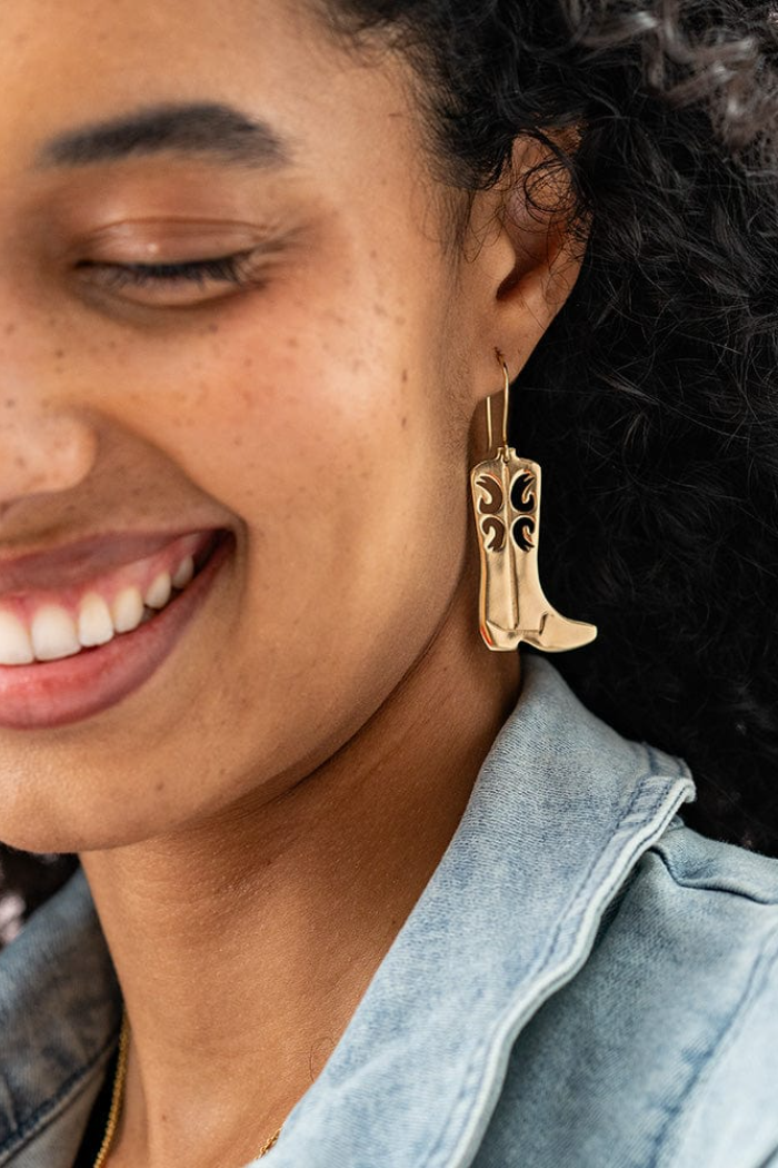 Lacey boot dangle earring brass
