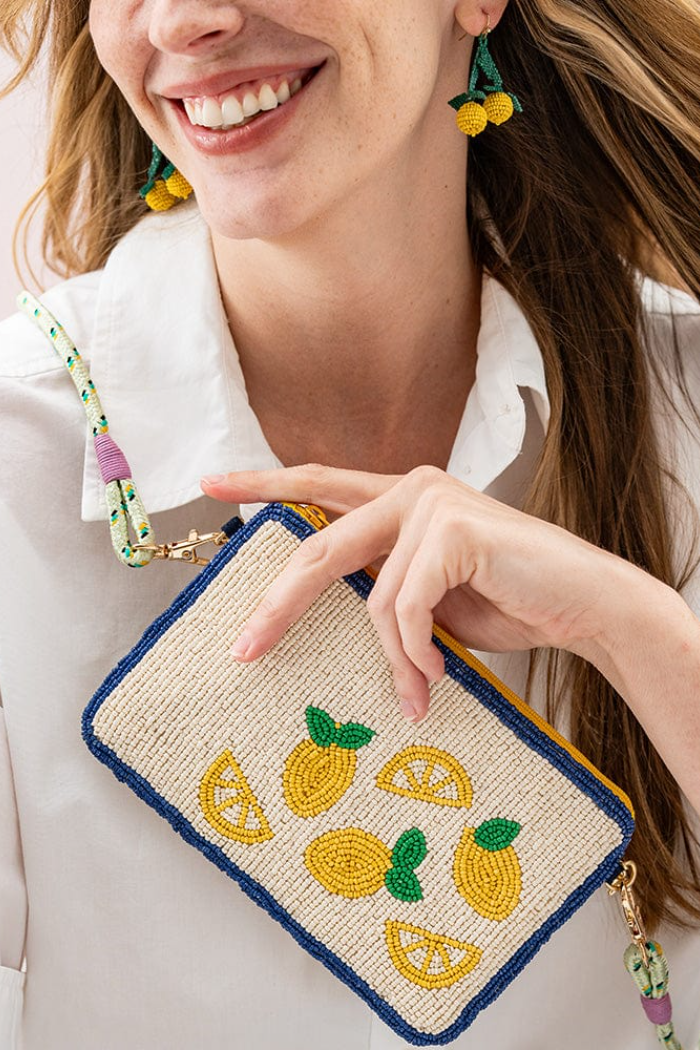 Add a zesty twist to your accessories collection with the Leila Lemons Clutch! Bright, playful, and versatile, it’s the perfect companion for sunny days and chic nights.