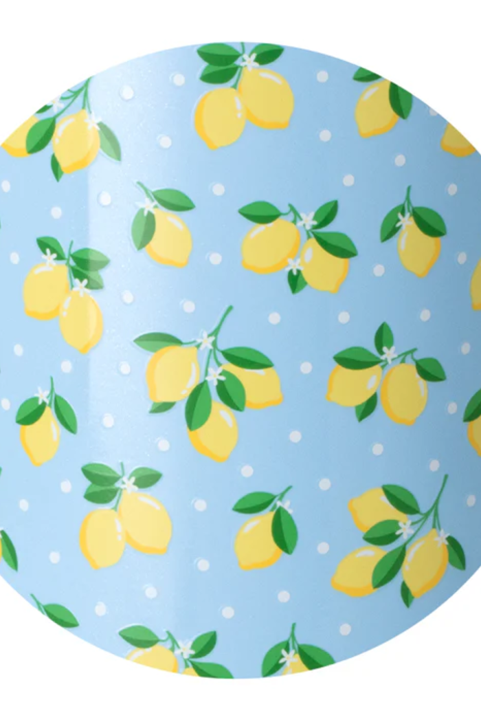 Tiny sips, big cheers! 🎉Squeeze the day with these freshly picked lemons and charming polka dots on a glitter sky-blue background.