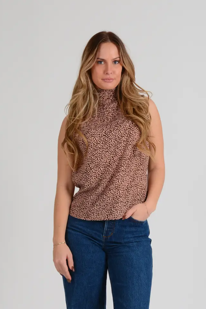 Liza Mock Neck Leopard Top