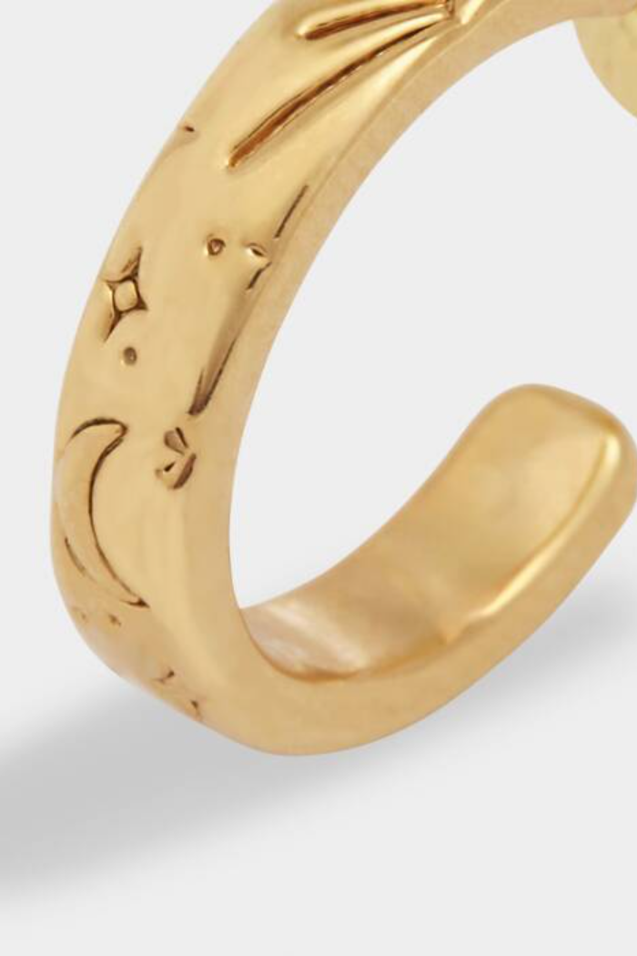 Certified waterproof, our Luna Waterproof Gold Hoop Earrings are designed in durable 18K Gold PVD Coating, meaning they are waterproof, sweat-proof and life-proof - and feature a captivating engraved celestial design. Pair these effortlessly with the matching Luna Necklace for a coordinated look.