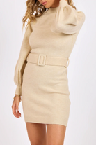 Elevate your everyday wardrobe with the Maeve Belted Sweater Dress from Sage The Label. Rendered in a soft cream hue, this effortlessly polished piece balances structure and ease. The statement bubble sleeves bring a modern edge, while the gently cinched waist, finished with a removable belt—creates a flattering, feminine silhouette. Crafted in a cozy knit that moves with you, it’s the kind of dress that adapts to your day: refined enough for the office, relaxed enough for off-duty moments. Style it with boots for a classic look, sneakers for casual ease, or layer it under a blazer when you want a touch of tailored polish. A timeless essential designed to look put-together without trying too hard.