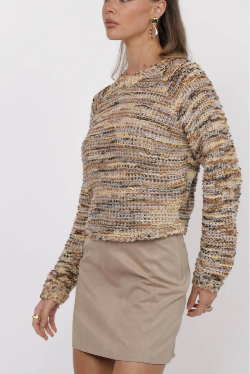 The Maisey Sweater brings cozy comfort and playful charm to your wardrobe. Designed with a classic crew neckline and a multi-toned taupe knit, it’s the perfect blend of style and warmth for any season. Whether you’re lounging at home or heading out, this sweater adds a fun, effortless touch to your look.