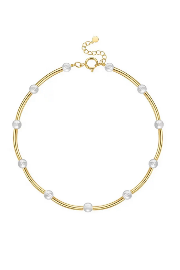 Elevate your everyday style with the Maui Necklace, a chic and modern short necklace designed for effortless elegance. Crafted with heavy gold plating (14k or 18k) over a durable base metal, this piece combines lasting shine with high-quality cubic zirconia or glass crystal accents for subtle sparkle. Its minimalist, versatile design makes it perfect for layering or wearing solo, while its waterproof and sweat-resistant construction ensures it keeps up with your lifestyle, whether at work, at the beach, or in the shower. Hypoallergenic and nickel-free, the Maui Necklace is a stylish, safe, and enduring addition to any jewelry collection.