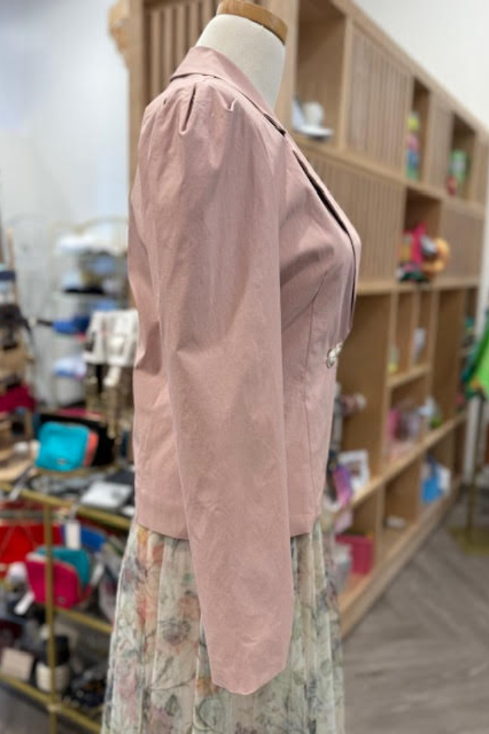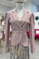 Elevate your wardrobe with the Natasha Jacket, a chic layering piece designed for modern sophistication. Crafted in a soft blush tone, this tailored jacket features a flattering silhouette with sharp lapels and long sleeves for a polished finish. The standout detail—two bold statement buttons—adds a touch of elegance, making it versatile enough for both office wear and evening outings.