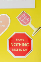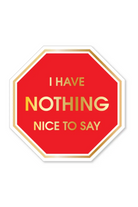 Straight to the point—because sometimes silence is golden, but a sticker says it better. Our I Have Nothing Nice To Say stop sign sticker delivers instant attitude with a glossy gold-foil finish that pops. Perfect for laptops, water bottles, tumblers, or anywhere you need to shut it down.