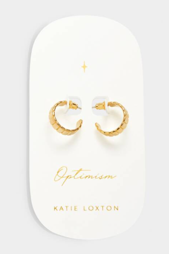 Certified waterproof, our 'Optimism' Waterproof Gold Amulet Hoop Earrings have been designed in 18K Gold PVD Coating, which is waterproof, sweat-proof and life-proof. These stunning hoop earrings feature an statement rectangular detail design and come presented on a premium card that is printed with the golden sentiment.