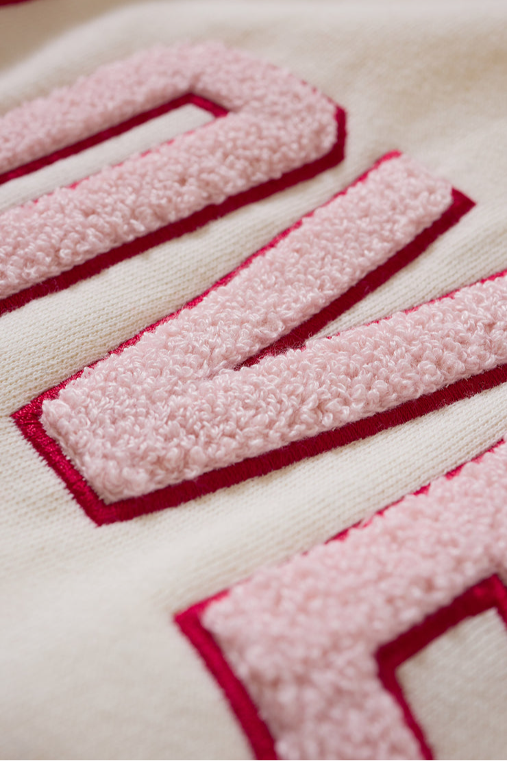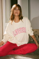 Designed with an oversized fit and soft cotton-blend fleece, this crewneck brings all the cozy vibes. The boucle “Lover” varsity lettering adds a romantic touch, making it perfect for lounging or layering on cool days.